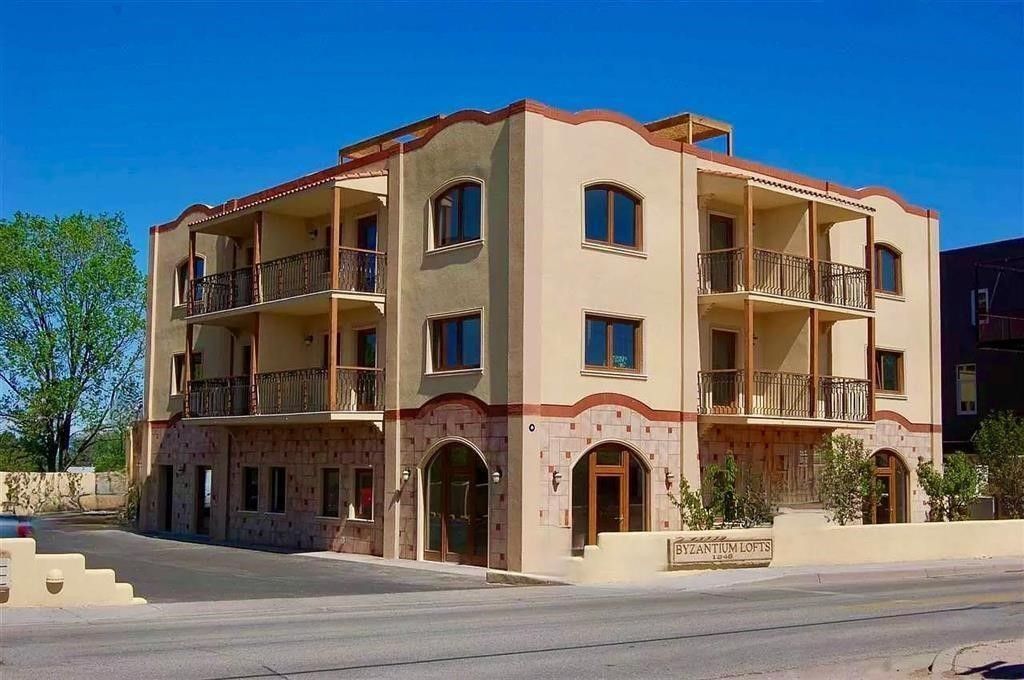 This open-plan loft features high ceilings and exceptional flexibility, with I-1 zoning that allows for residential, live/work, studio, or creative use. Located just one block from the South Capitol Rail Runner Station, the property offers unmatched convenience while being only minutes from downtown Santa Fe. Surrounded by restaurants, grocery stores, and shopping, it combines accessibility with modern comfort. Designed with sustainability in mind, the property includes energy-efficient features such as R-6 insulated double-glass German windows, R-60 ceilings, and R-48 walls. These eco-friendly elements complement the loft's clean, contemporary design. The unit offers an exceptional living and/or working experience, with the added bonus of access to the rooftop garden, where breathtaking 360-degree views of the city and surrounding mountains await.
